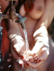 Short description: Skinny black haired teen babe Dita gets nude and wet in the garden.